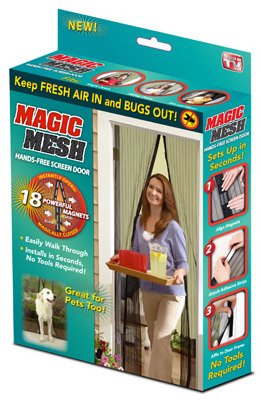 | 80 of 83 people found the following review helpful This review is from: Magic Mesh Hands-Free Screen Door anxiously i received and attempted to install this...what a pain in the rear...1) the magnets need to line up almost perfectly for it to work properly...good luck keeping the screen in place while installing it to make it work correctly...i could get all but the top magnet to come closed automatically... 2) the sewing is atrocious...whatever Chinese manufacturer had this sewn needs to fire his entire workforce and start over...i did a straighter stitch in 7th grade home-ec...it's almost laughable... 3) because it isn't sewn straight, it hangs funny from the top, so the magnets don't line up... 4) the magnets are pretty weak, so a light wind will separate them...it took me the better part of an hour to get this hung JUST RIGHT to make it close properly...then the wind blew it open...when the wind STOPPED it closed again...umm...it's outside...it needs to stay shut unless an animal or human pushes it open... 5) the Velcro they sent to stick to the magic mesh... Read more 42 of 44 people found the following review helpful This review is from: Magic Mesh Hands-Free Screen Door I cannot begin to tell you how poor there service is. First be careful on their web page. THERE IS NO CONFORMATION PAGE TO CONFIRM YOUR ORDER. after you click the amount you want, they come up and say well do you want them at a reduced price. Of course we do, so we hit yes = ANOTHER ITEM ORDERED. Then, do you want reinforced magnets, Hell yea = ANOTHER ORDER. I just wanted one order and i got triple billed comming up to $203 dollars for like 8 screens. Went to call to cancel, sorry sir the order hasbeen processed YOU'LL HAVE TO SHIP IT BACK. There for I get stuck with the bill for shipping. Asked to speak to the manager and this is what they said, "Hello, hello sir, hello, hello sir I can't hear you.," Then hung up. I reported them to the better business beauro and filed a claim with my bank. I am refusing to accept any package from them. God help them, what a bad company 60 of 65 people found the following review helpful By This review is from: Magic Mesh Hands-Free Screen Door I received my order a few weeks ago. I did receive the velcro strips for both doors and they also include large black thumb tacks which add extra ways to secure the mesh. Be sure to clean the surface well that you plan to stick the velcro to. If you don't they won't stick. It took our dog a few times to get the hang of it. The cats will only go through if we fold back the last magnet at the bottom so they can see it is not a door. Animals are going in and out and the bugs are staying out. So far, this has been a good purchase. 4 stars instead of 5 because of how the internet order process on the buymajicmesh site (not Amazon) handled the order and added additional charges. Once I called them, they took the charges off. |